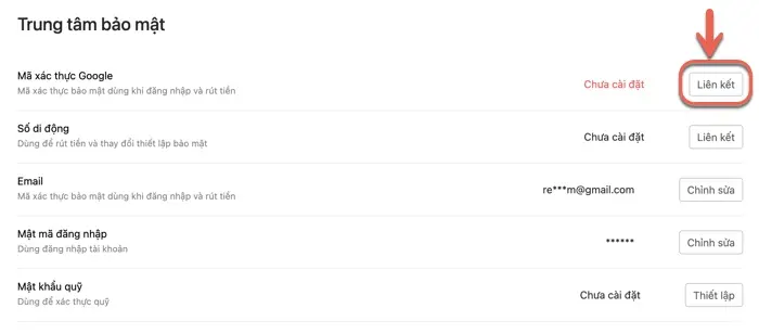 Bật bảo mật 2 lớp giúp tài khoản an toàn và được phép sử dụng các thao tác liên quan tới rút tiền, chuyển tiền,…