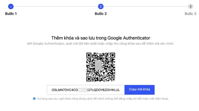 Bước 4: Sử dụng ứng dụng Google Authenticator quét Qr Code để nhận 2FA.