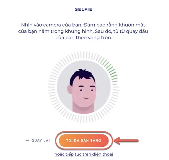 Bước 4: Nhấn vào để thiết bị quay khuôn mặt của bạn. Sau đó, nhấn vào “Tôi đã sẵn sàng“.