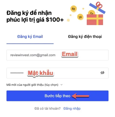 Bước 1: Truy cập vào link: https://bingx.com/register/ và điền thông tin đăng ký: