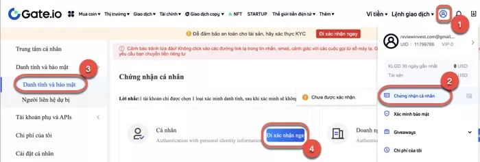 Hướng dẫn đăng ký & xác minh danh tính cho tài khoản sàn Gate.io: