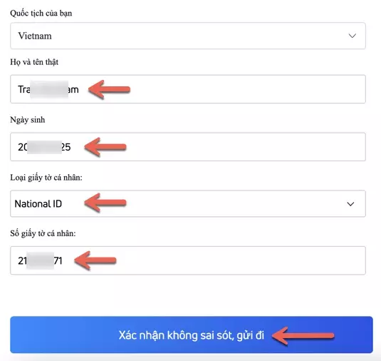 Bước 5: Cuối cùng, bạn chọn Xác nhận không sai sót, gửi đi. Như vậy bạn đã hoàn thành xong xác nhân KYC, chỉ việc đợi sàn Gate.io xét duy thành công là được.