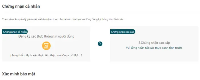 Bước 3: Sau khi xong xác nhận Danh tính cá nhân, bạn cần thực hiện tiếp Chứng nhận cao cấp.