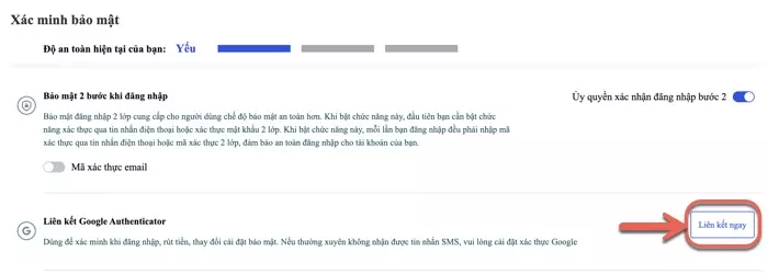 Bước 2: Ngay “Liên kết Google Authenticator” → Chọn “Liên kết ngay“.