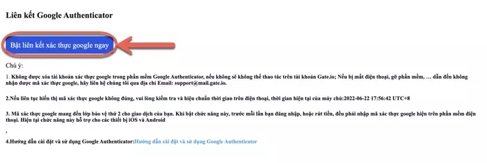 Bước 3: Nhấn vào “Bật liên kết xác thực Google ngay“.