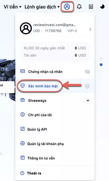 Bước 1: Chọn vào “Xác minh bảo mật“.