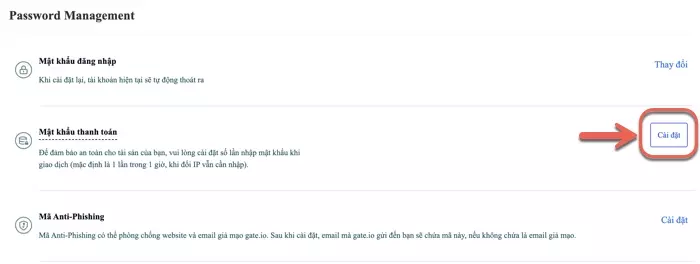 Bạn nên cài mật khẩu thanh toán để khi thao tác rút tiền Gate.io sẽ yêu cầu bạn sử dụng Mật khẩu thanh toán.