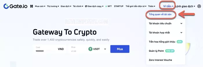 Dưới đây mình sẽ hướng dẫn cách nạp và rút tiền (USDT) trên Gate.io, tương tư bạn có thể thao tác cho token khác. Phí giao dịch rút tiền trên Gate.io tuỳ thuộc vào từng loại coin/token khác nhau.