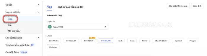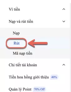 Bước 2: Vào “Nạp và rút tiền” → “Nạp“.