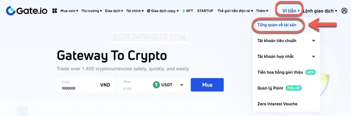 - Bước 5: Nạp tiền và Giao dịch trên sàn Gate.io.