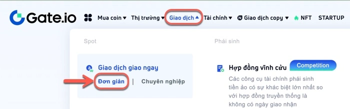 Bước 1: Vào “Giao dịch” → Chọn “Đơn giản” tại “Giao dịch giao ngay“.