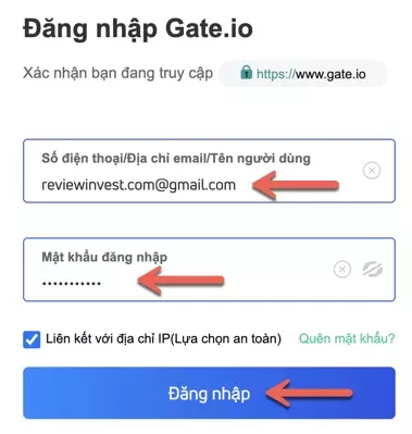 Bước 1: Nhập thông tin Email và Password vừa đăng ký để đăng nhập vào tài khoản Gate.io: