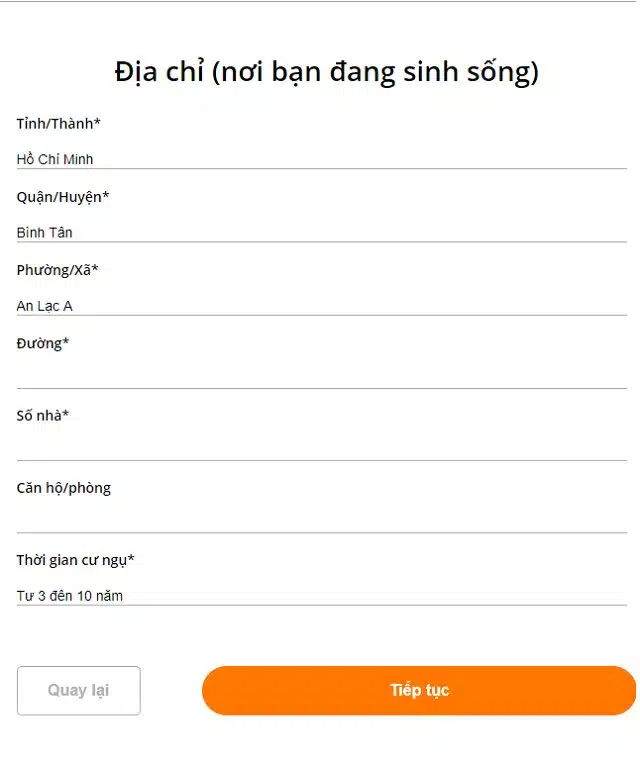 Bước 3: Điền địa chỉ nơi bạn sinh sống